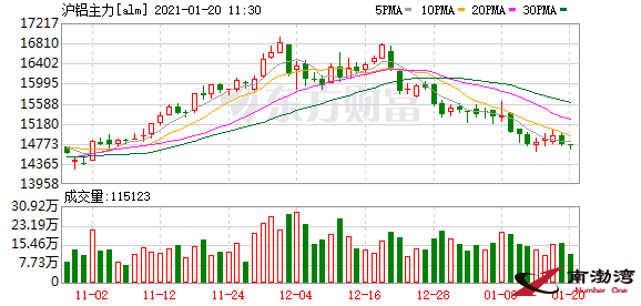 1月20日,國(guó)內(nèi)期貨市場(chǎng)上滬鋁主力合約再度走跌,早盤(pán)收于14725元/噸,盤(pán)中最低至14635元/噸。2020年12月末至今,該主力合約最大跌幅已達(dá)到11%。