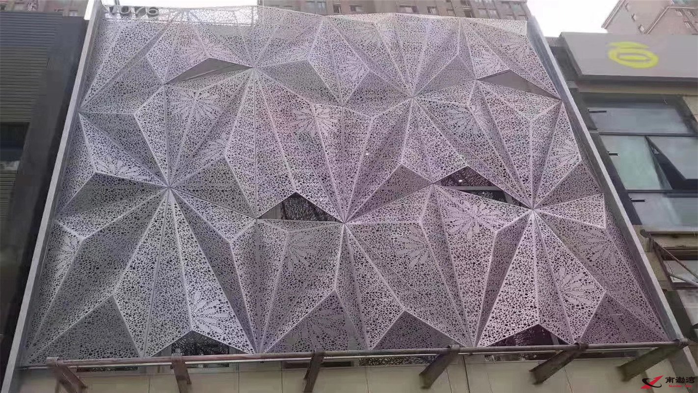 6、安裝施工方便快捷。鋁板在工廠成型,施工現(xiàn)場(chǎng)不需裁切,固定在骨架上即可。